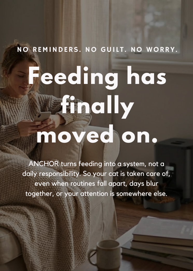 Most feeders try to improve feeding by adding more features, apps, cameras, alerts. ANCHOR is built around a different idea: removing memory and routines from feeding entirely.